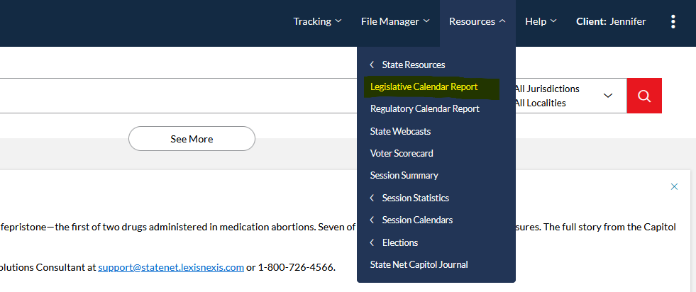 In addition to the legislative calendar, you can set up email alerts for new hearing notifications on your tracked measures inside the Tracking Console using the bell icon at the top right of the results page: