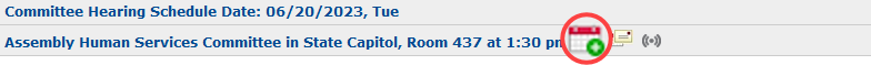 You can also integrate hearing information directly into your calendar (Outlook, iCal, etc.) using the Calendar Entry icon next to the hearing of your choice: