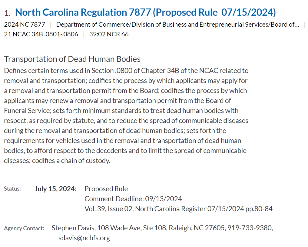 - Agency contact information and comment deadlines
