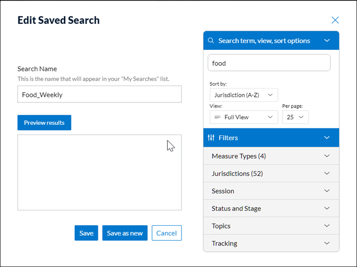 The dropdown provides you the ability to run advanced and targeted search—combining legislative, regulatory and topic all in one. You can enter a bill number, a term or phrase or a topic while choosing which bill type, regulation, etc. to search for.